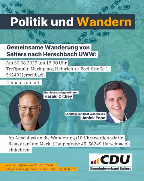 Herzliche Einladung: Politik und Wandern im CDU Gemeindeverband Selters