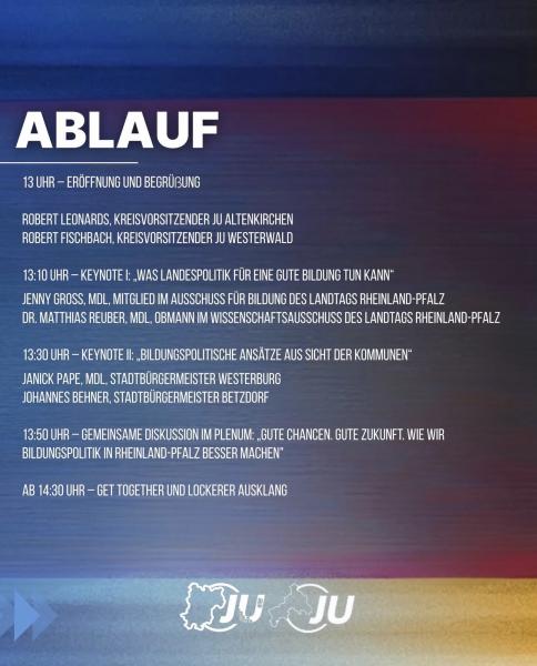 Dabei sind die Zuständigkeiten für Bildungspolitik in Deutschland klar geregelt: Bildung ist Ländersache! Dies möchten wir zum Anlass nehmen und bei einem inhaltlichen Austausch die zentralen Chancen und Herausforderungen einer zukunftsfähigen Bildungspolitik in Rheinland-Pfalz gemeinsam diskutieren.