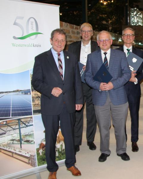 Landrat Achim Schwickert hat im Rahmen der Jubiläumsfeier zum 50-jährigen Bestehen des Westerwaldkeises langjährige CDU-Kreistagsmitglieder geehrt. Johannes Kempf gehört dem Kreistag bereits 30 Jahre an, Dr. Stephan Krempel und Dr. Kai Müller gehören dem Gremium bereits 25 Jahre an. In Redebeiträgen gingen die Geehrten in je eigener Art und Weise auf ihre Eindrücke und Erfahrungen im Westerwälder Kreistag ein.