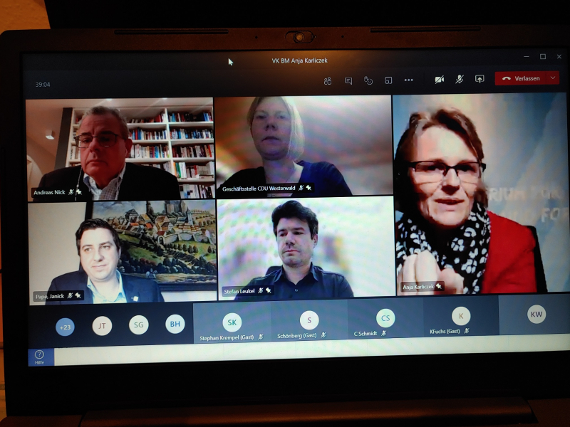HACHENBURG. Der CDU-Kreisvorsitzende Dr. Andreas Nick MdB und CDU-Bürgermeisterkandidat Stefan Leukel waren virtuelle Gastgeber einer Videokonferenz mit Bundesbildungsministerin Anja Karliczek MdB. Schwerpunktthemen waren die Auswirkungen von Corona im Bildungsbereich, der Digitalpakt und die Ganztagsbetreuung im Grundschulbereich. Klare Ansage von Karliczek: „Bund und Länder müssen die Kommunen bei ihren Entscheidungen und der Umsetzung mit ins Boot nehmen.“
